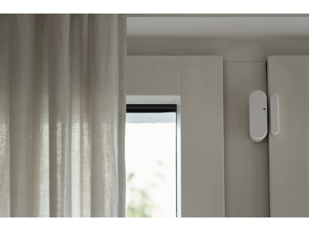 - Okamžitě spouští alarm a scénáře, které si zvolíte (např. rozsvícení světla při otevření dveří).