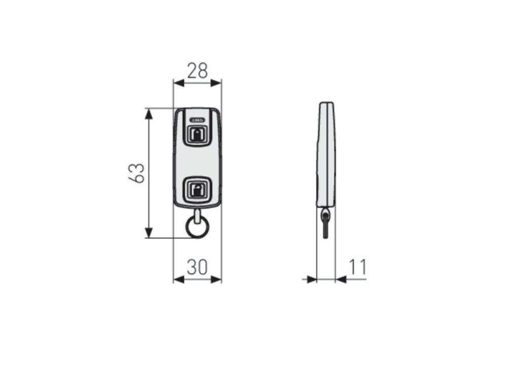 Dálkový ovladač pro ovládání produktů ABUS, dvě tlačítka, komunikace přes Bluetooth, napájení bateriemi CR2032, černé provedení.