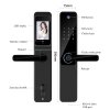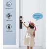 WiFi chytrá klika, vhodná pro hotely a ubytovací zařízení, ovládání přes mobilní aplikaci Tuya Smart/Smart Life, 5 možností odemykání (klíč, otisk prstu, číselný kód, čipová karta, mobilní telefon), vestavěná HD kamera, vestavěný LED displej, funkce automatického zamykání, možnost pravé i levé orientace, napájení bateriemi 8ks AA, černá.
