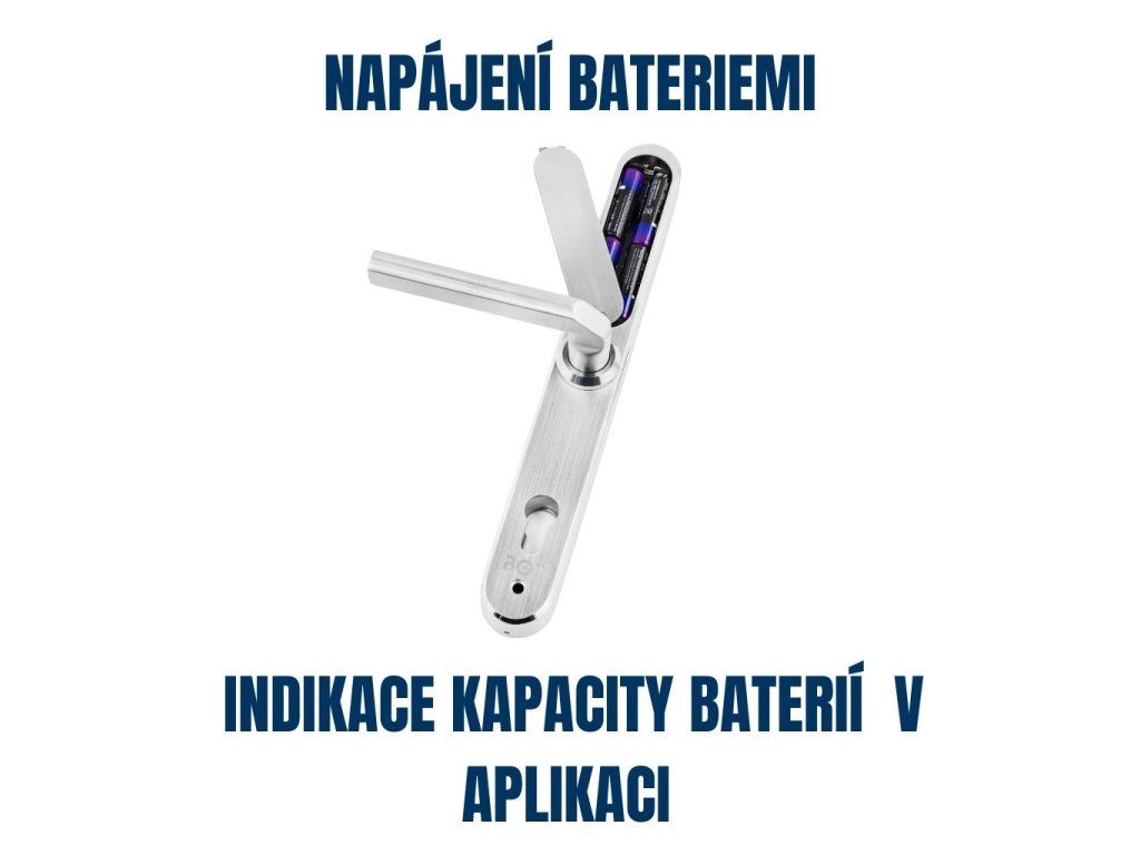 Na nízký stav baterií upozorňuje klika přímo na dveřích