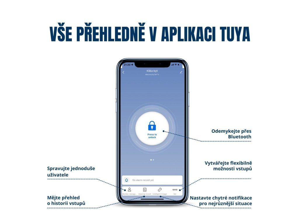 - ✔ Životnost baterií: přibližně 10 měsíců (v případě odemykání 20x denně)