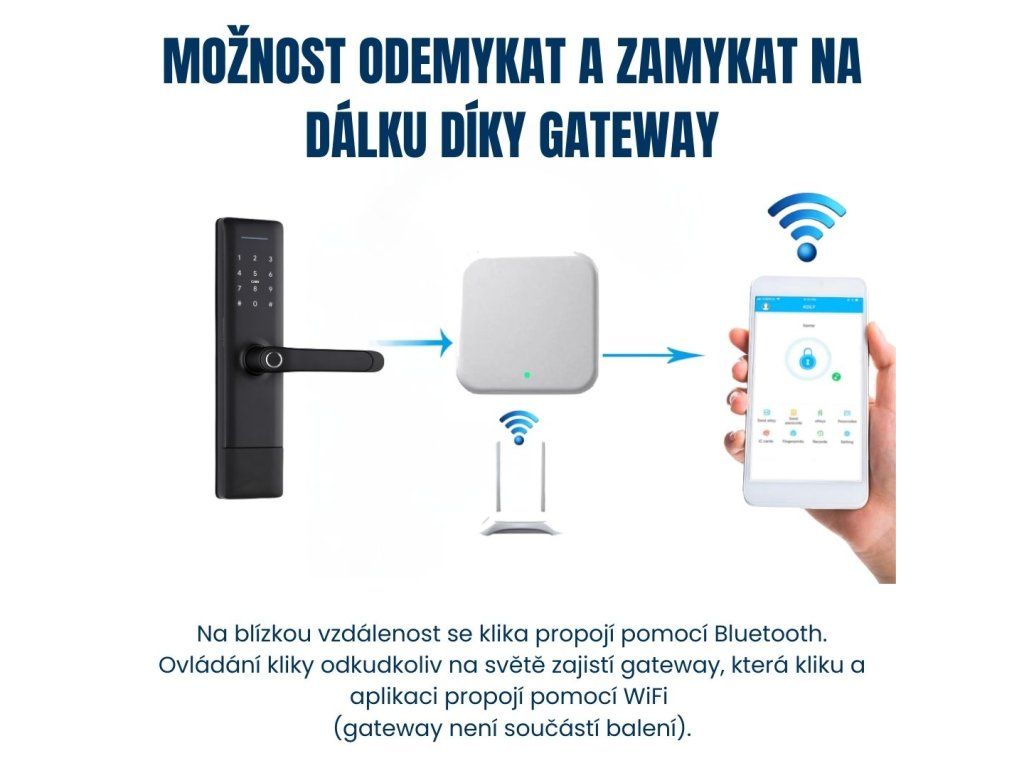 - ✔ S gateway lze propojit i přes WiFi 2,4 GHz (nutno dokoupit)