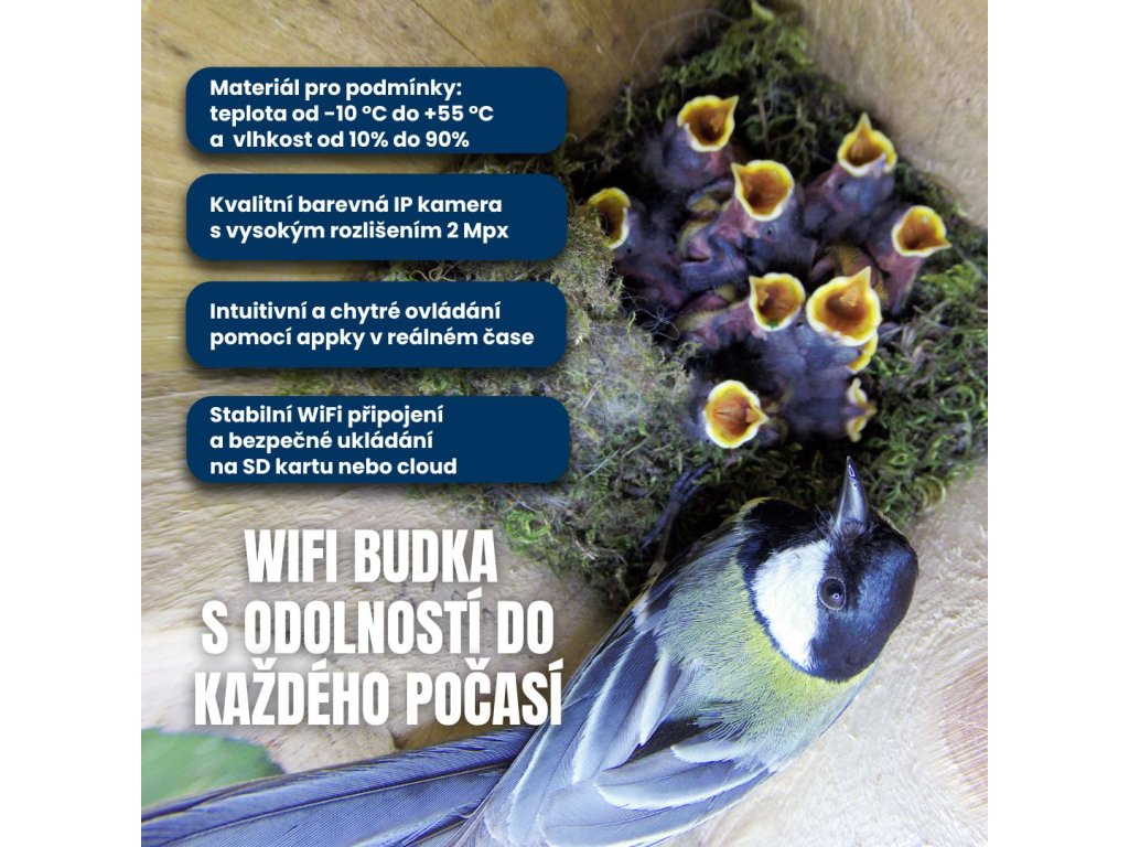Podpora mobilní aplikace – živý náhled, stahování záznamů a nastavení přímo v Bird Lover / Tuya Smart
