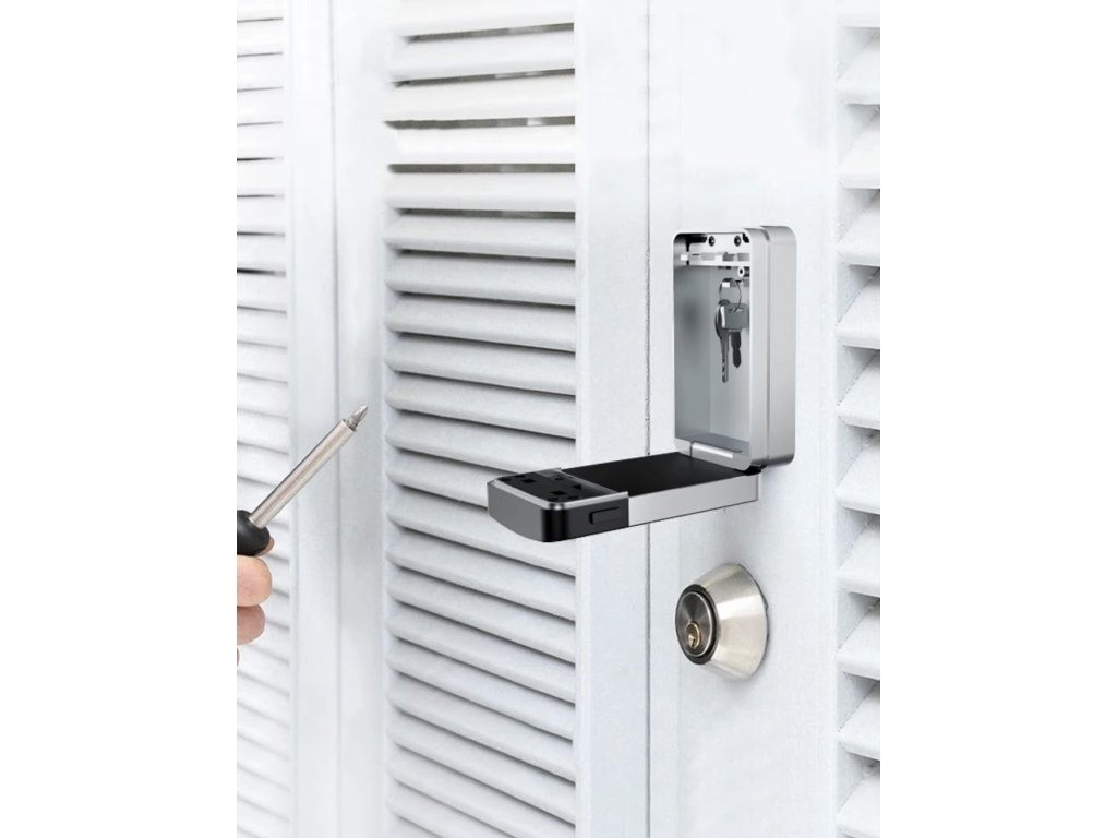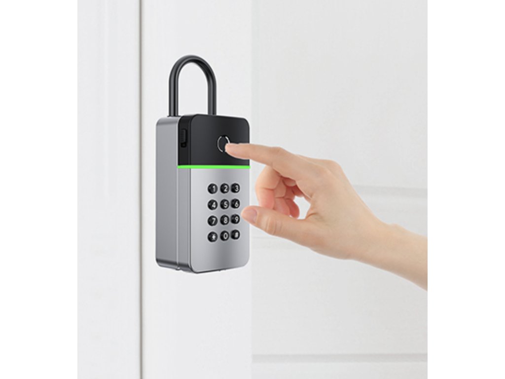 Chytrá schránka na klíče, Bluetooth, napájení pomocí baterií, čtečka otisku prstů, odemknutí kartou, pinem nebo přes telefon, offline fungování, zaznamenávání příchodů a odchodů, ovládání pomocí aplikace TTLock, černé nebo stříbrné provedení.