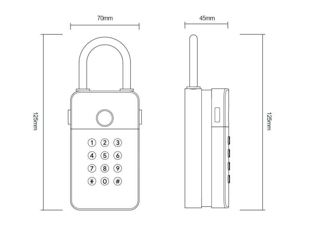 - Způsoby odemčení: otisk prstu, karta, PIN kód, Bluetooth, WiFi, mechanický klíč