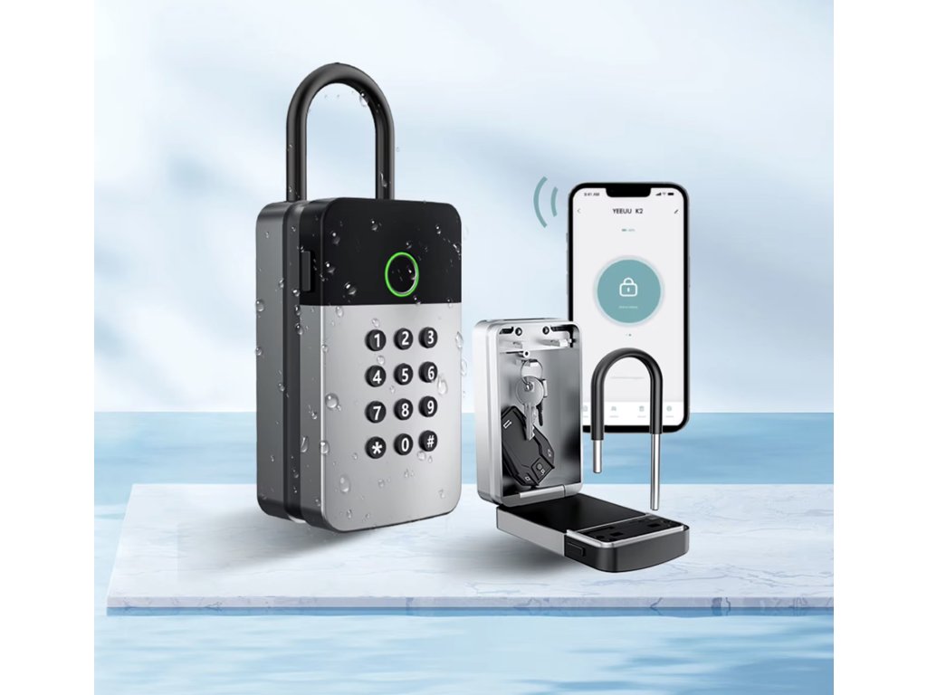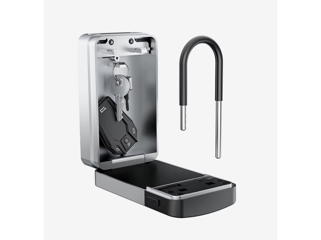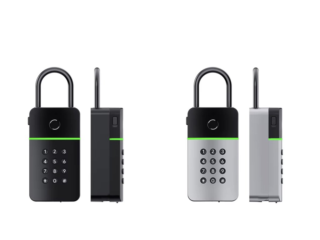 Chytrá schránka na klíče, Bluetooth, napájení pomocí baterií, čtečka otisku prstů, odemknutí kartou, pinem nebo přes telefon, offline fungování, zaznamenávání příchodů a odchodů, ovládání pomocí aplikace Tuya Smart, černé nebo stříbrné provedení.