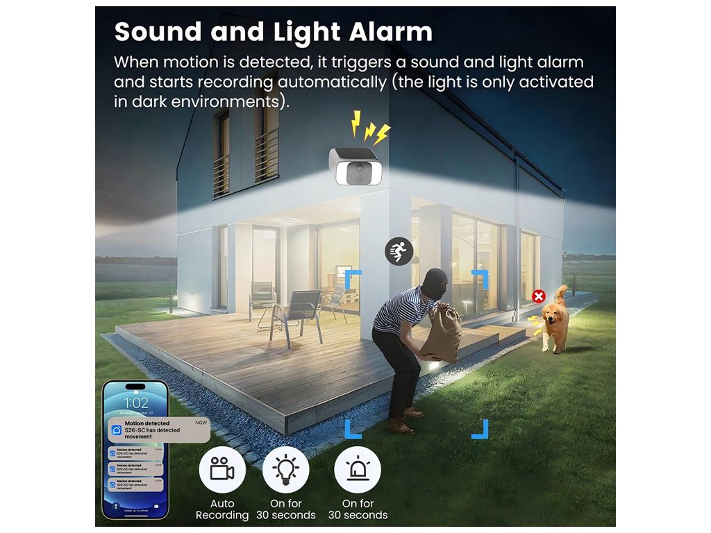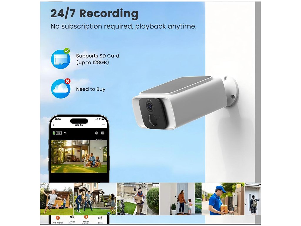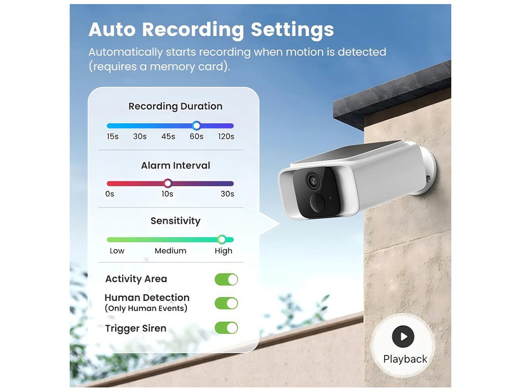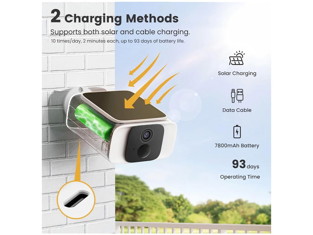 Kamera nabízí QHD rozlišení 2560 × 1440 px, které zajišťuje ostrý obraz ve dne i v noci. Samozřejmostí je noční vidění, barevný i černobílý režim, detekce pohybu s filtrováním osob a obousměrná hlasová komunikace. Ovládání probíhá prostřednictvím mobilních aplikací Tuya Smart nebo Smart Life, přičemž kamera je kompatibilní také s Amazon Alexa a Google Assistant.