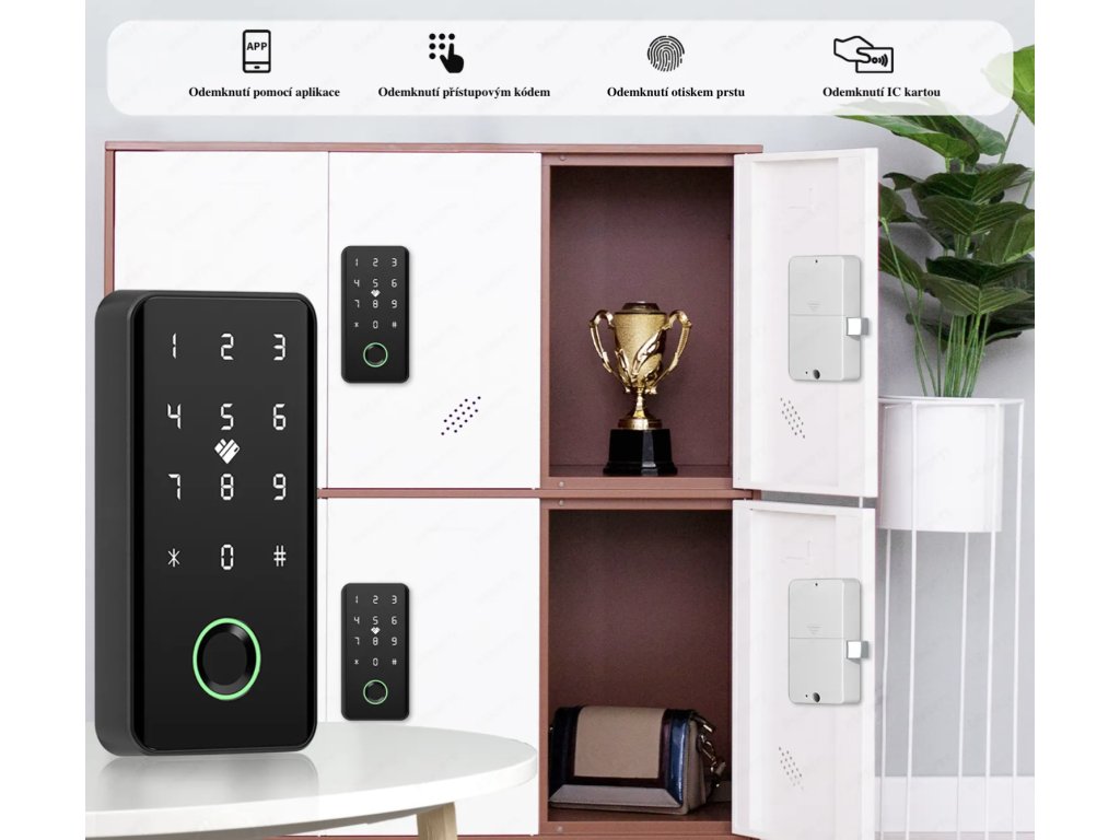 - Způsob odemykání: PIN, otisk prstu, IC karta, mobilním telefonem