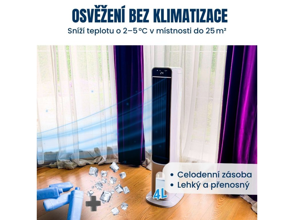 ✔ Žádný hluk ani ozón, žádná složité instalace – jen přirozené ochlazení vhodné i pro alergiky a děti
