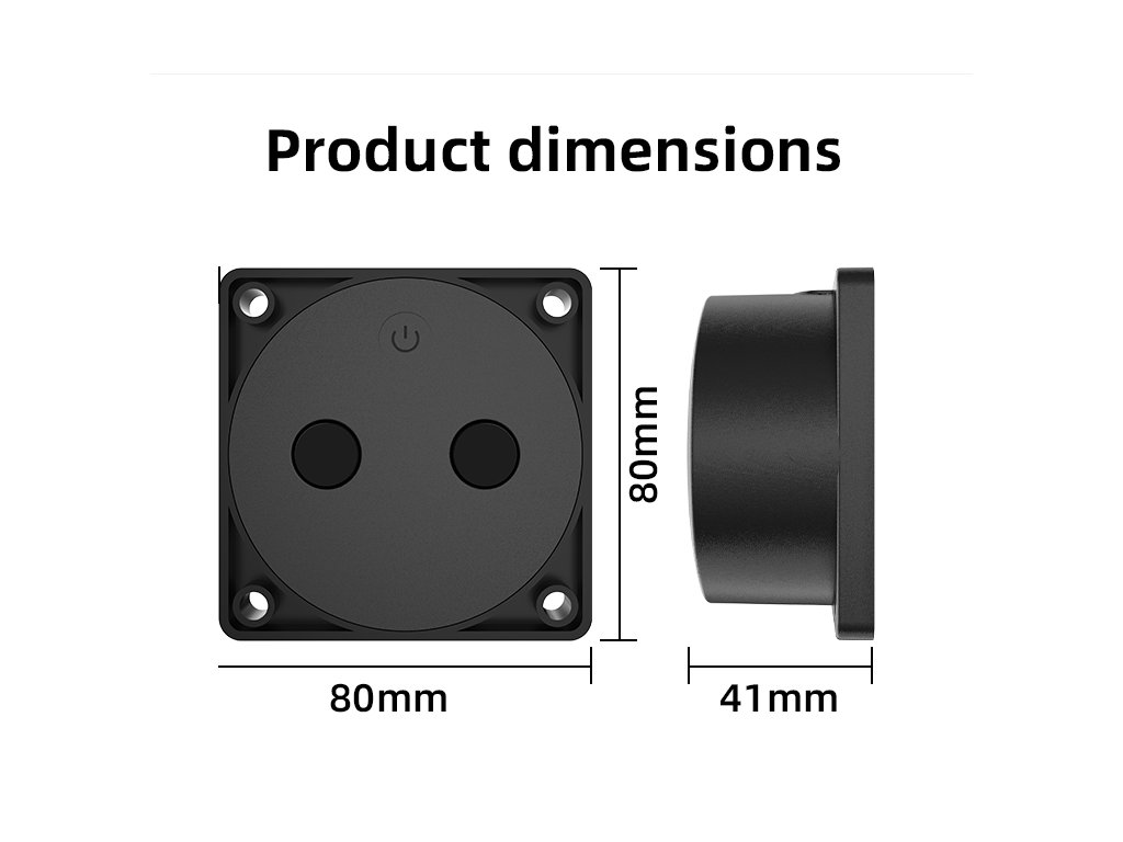Elegantní černé provedení a kompaktní rozměry zajišťují, že senzor působí nenápadně, přesto poskytuje maximální funkčnost.