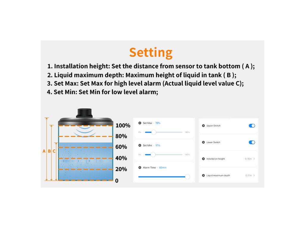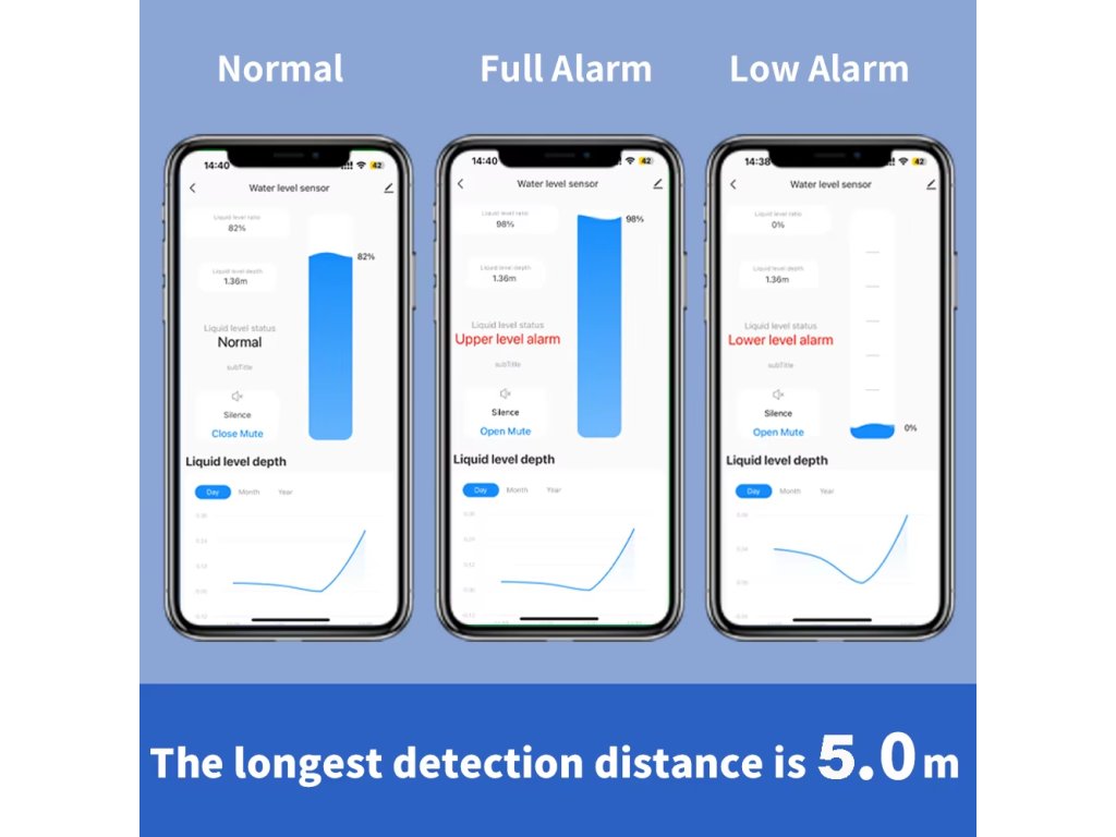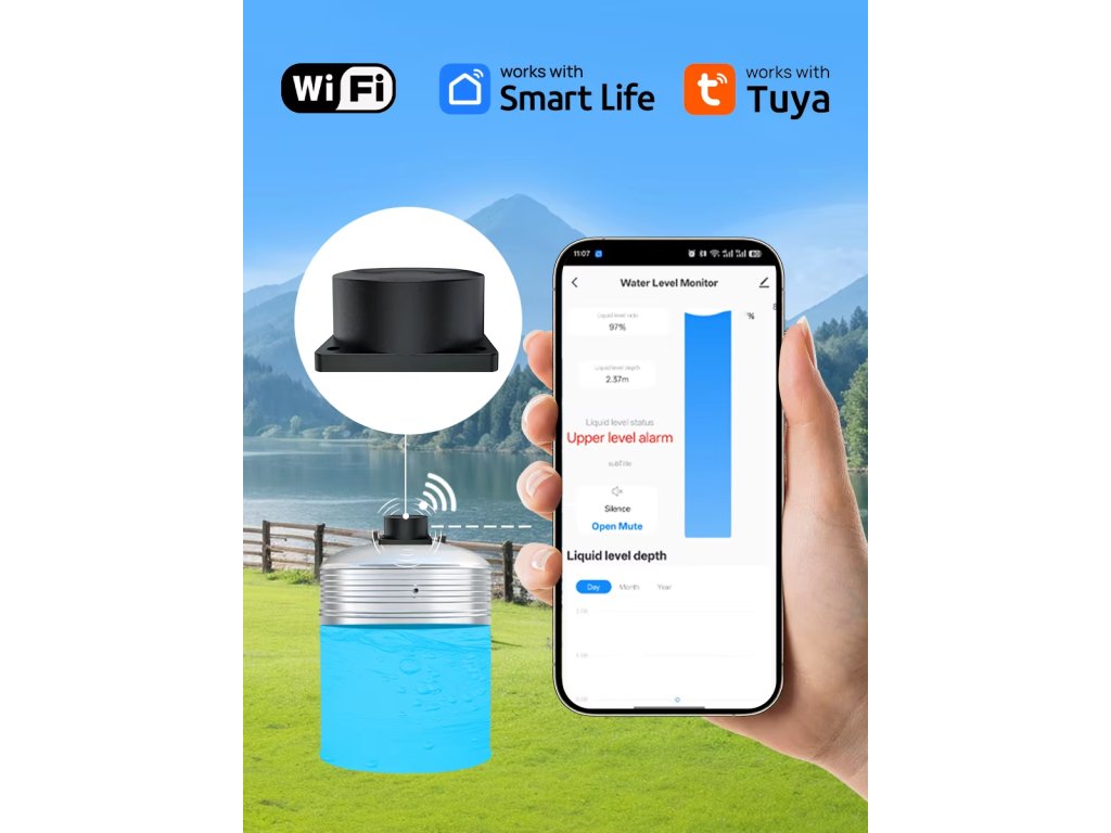 Zařízení se připojuje přes WiFi 2,4 GHz a umožňuje nastavit upozornění při dosažení kritické úrovně vody, což pomáhá předcházet škodám způsobeným přetečením nebo naopak nedostatkem vody. Díky stupni krytí IP65 je senzor odolný vůči prachu i vodě a hodí se i pro náročnější podmínky.