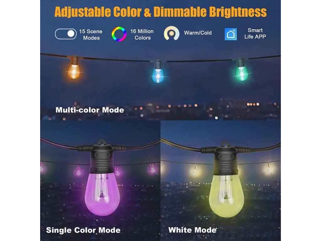 BOT Venkovní chytrý LEDžárovkový řetěz na párty OSL1 15 metrů Tuya RGBCW WiFi a BT