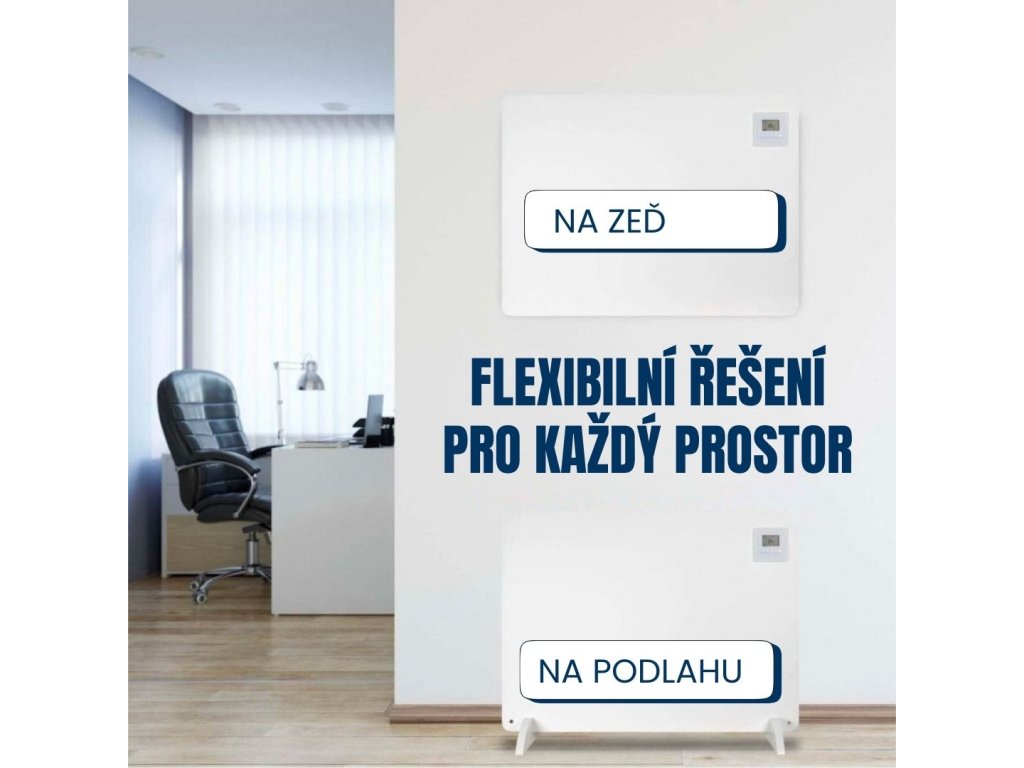 - Flexibilní instalace: Možnost umístění na stěnu nebo na podlahu – ideální do ložnic, kanceláří i koupelen.