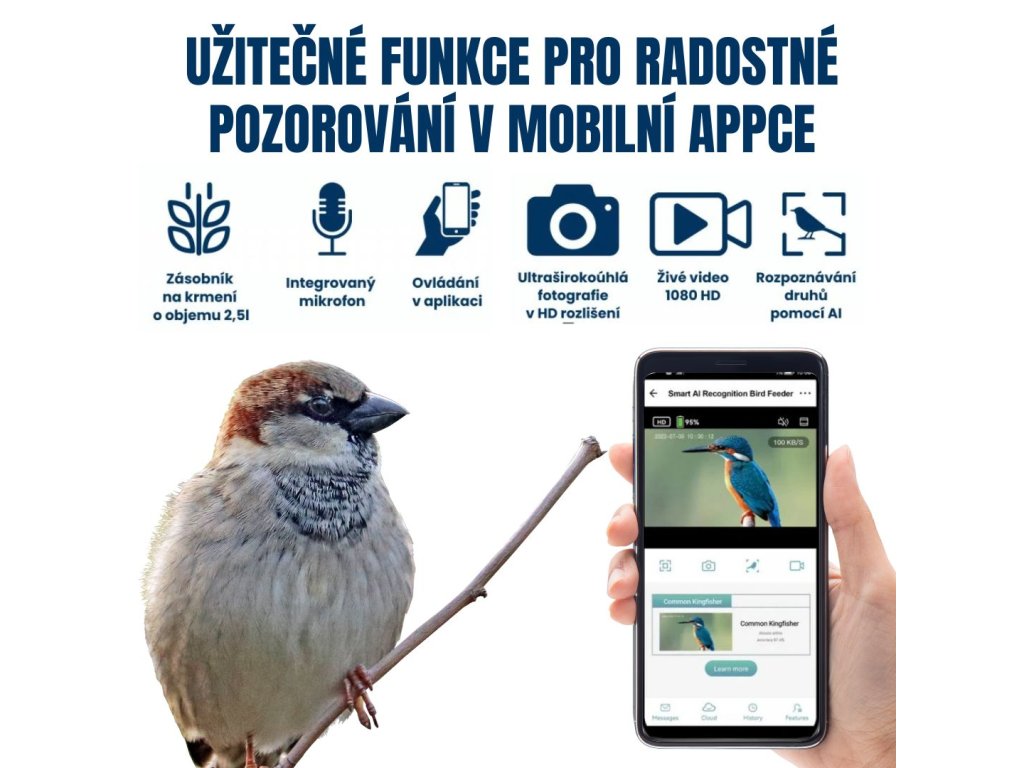 Pro všechny milovníky ptactva a pozorování rozmanitosti druhů máme skvělou zprávu. Chytré krmítko pro ptáky jim přinese spoustu zábavy, edukace a zážitků přímo z domova. Krmítko je vybaveno integrovanou kamerou, která umožňuje sledovat ptáky přímo z pohodlí vašeho obývacího pokoje. Kamera je navržena tak, aby poskytovala čistý a jasný obraz, takže se můžete těšit na úchvatné záběry.