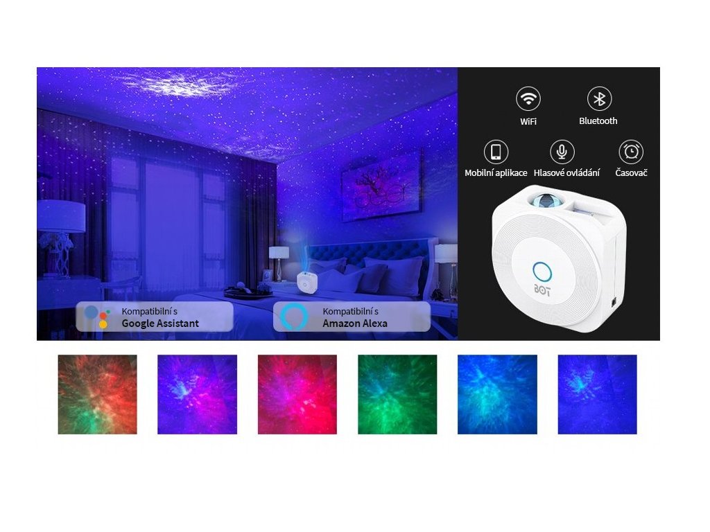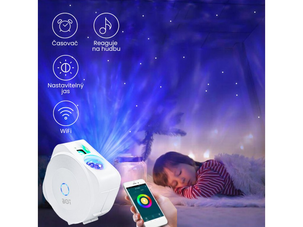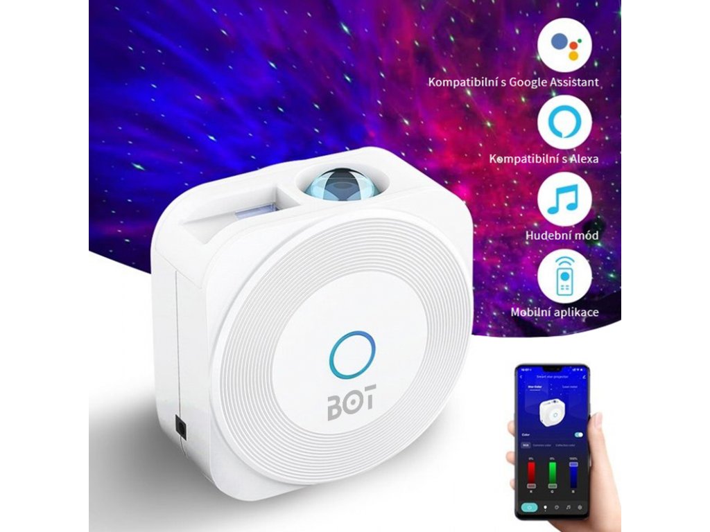 Projektor noční oblohy s hvězdami a mlhovinou do dětského pokoje, na párty nebo třeba pro domácí kino. Ovládání pomocí mobilní aplikace Smart Life, kompatibilní s Alexa a Google Home a Apple HomeKit.