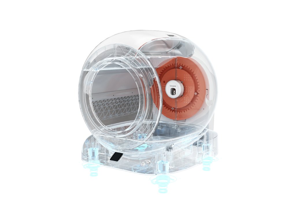 Samočistící záchod SCL1 je navržen pro maximálně jednoduchou údržbu. Nádoba na odpad má kapacitu vhodnou pro provoz až na 15 dní bez nutnosti zásahu. Ovládání probíhá buď ručně jedním tlačítkem přímo na těle přístroje, nebo vzdáleně pomocí mobilní aplikace. Funkce pro rychlé vysypání steliva i integrovaný systém deodorace udržují prostředí čisté a bez nepříjemného zápachu. Aplikace navíc sleduje frekvenci návštěv toalety a změny hmotnosti kočky – to vše pomáhá včas odhalit případné zdravotní komplikace.