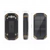 Solární powerbanka se skládá z lithium-polymerových baterií o celkové velikosti 20 000 mAh. Pomocí 4 LED diod je možné sledovat zbývající kapacitu solární powerbanky. Díky dvěma USB vstupům lze zapojit rovnou dvě zařízení najednou. Tento produkt je vhodný rovněž, když jste na cestách, protože je vybavený voděodolnou ochranou IP67. Kromě toho lze na spodní straně nalézt LED svítilnu, který dokáže svítit i v různých režimech jako je například režim SOS.