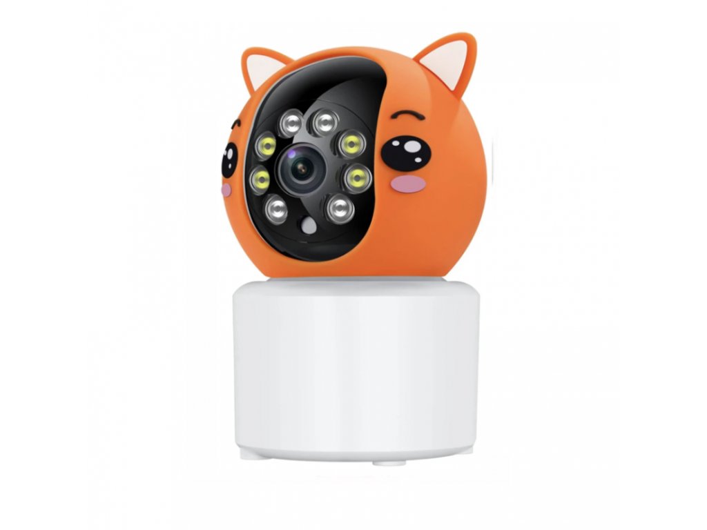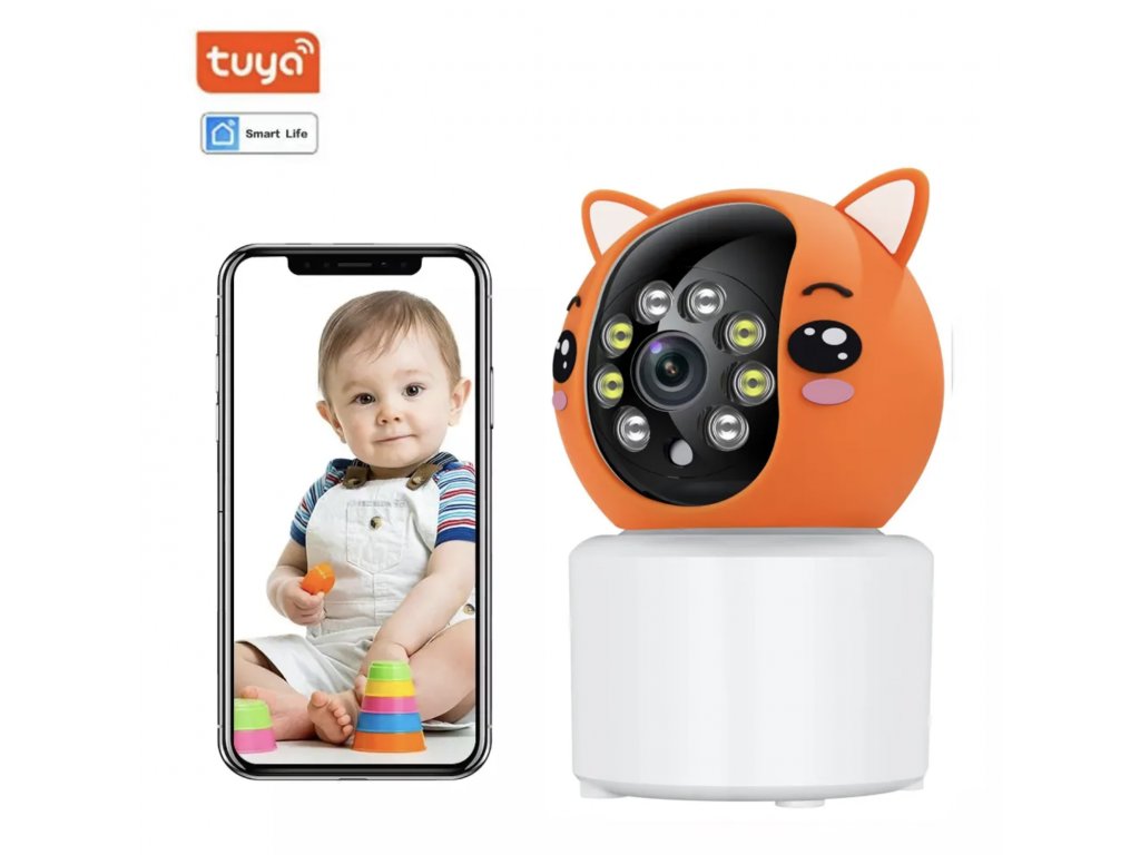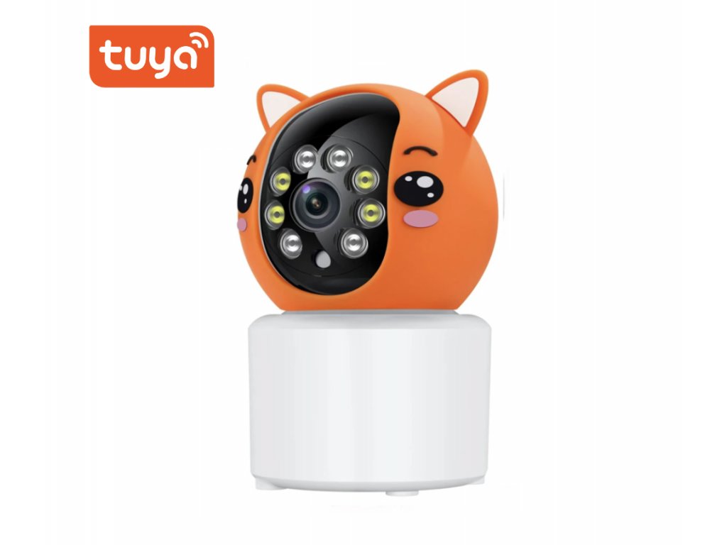 Vnitřní WiFi kamera, natočení kamery horizontálně 0°-350° a vertikálně 0°-90°, rozlišení: 1920×1080, automatické přepínání denního a nočního režimu, nastavení detekce pohybu, podpora obousměrné audio komunikace, kompatibilní s mobilní aplikací Tuya Smart/Smart Life, oranžové provedení.