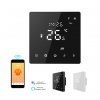 Chytrý pokojový termostat, varianta 16A nebo 3A, WiFi, ovládání chytrým telefonem, dotykový display, možnost nastavení teploty v rozmezí 10°C - 30°C, použití na regulaci: topeného systému, kotle, boileru a další, mobilní aplikace Tuya Smart / Smart Life, kompatibilní Google Assistent, Amazon Alexa, černé nebo bílé provedení.