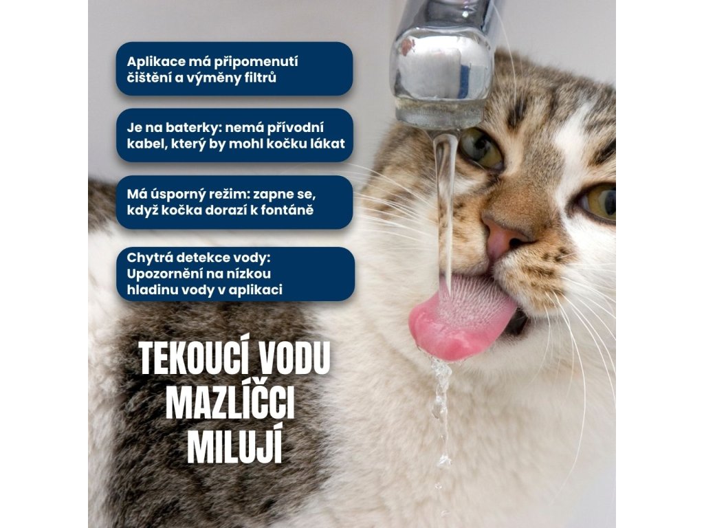 ✔ Cirkulující voda je pro kočky lákavá