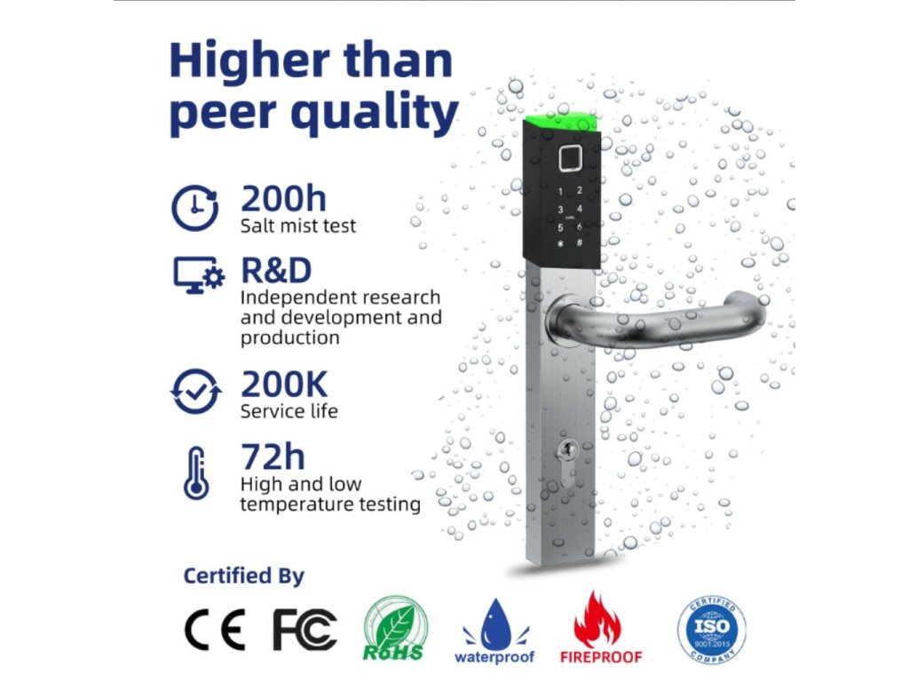 Díky jednoduché instalaci, napájení bateriemi a univerzální pravolevé orientaci je chytrá klika TTLock HRM1 ideální volbou pro každého, kdo hledá spolehlivé a elegantní řešení chytrého zabezpečení dveří.