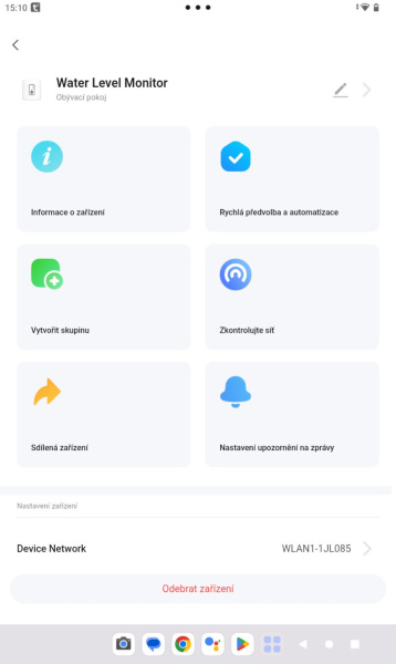 Při prvním párování jsem zařízení pouze položil na víko studny. V tu chvíli dorazil náš čtyřnohý pomocník – vlčák Ben. Po krátkém očichání zařízení shodil do studny. Naštěstí zůstalo viset na napájecím kabelu. Neplánovaný test odolnosti tak dopadl dobře 🙂