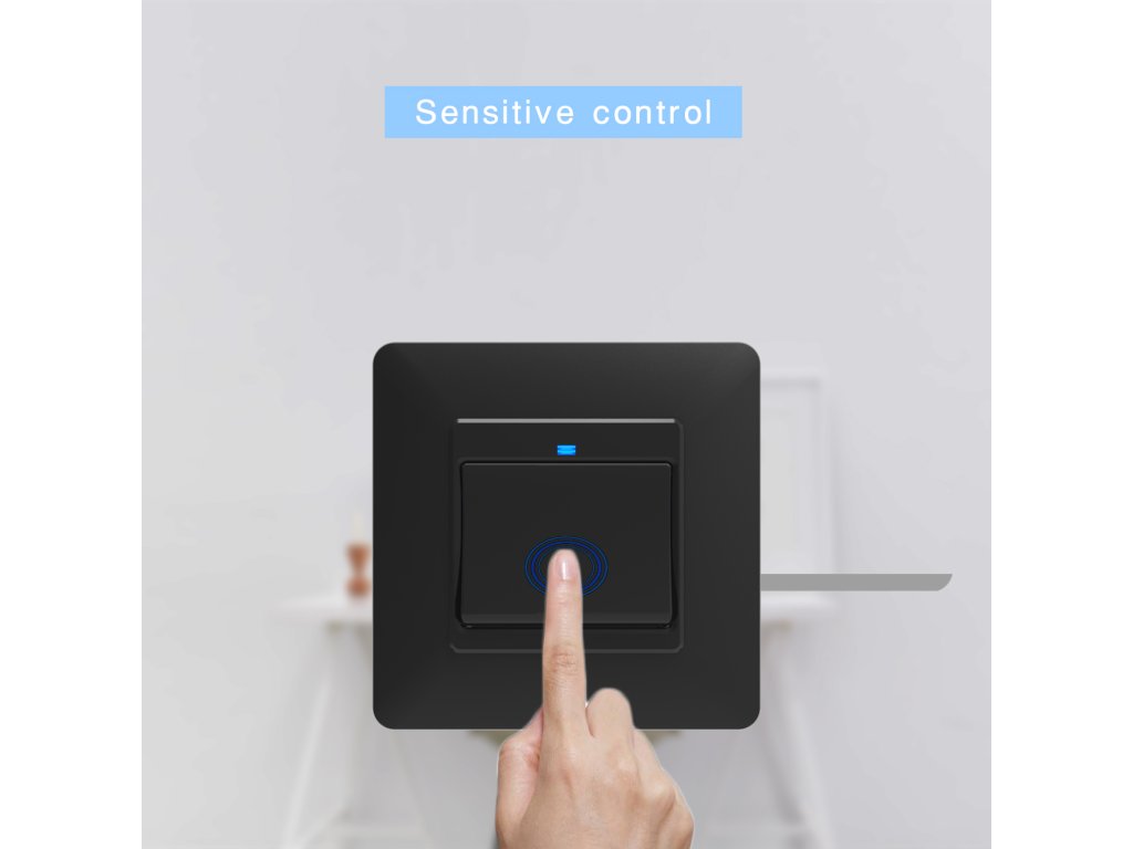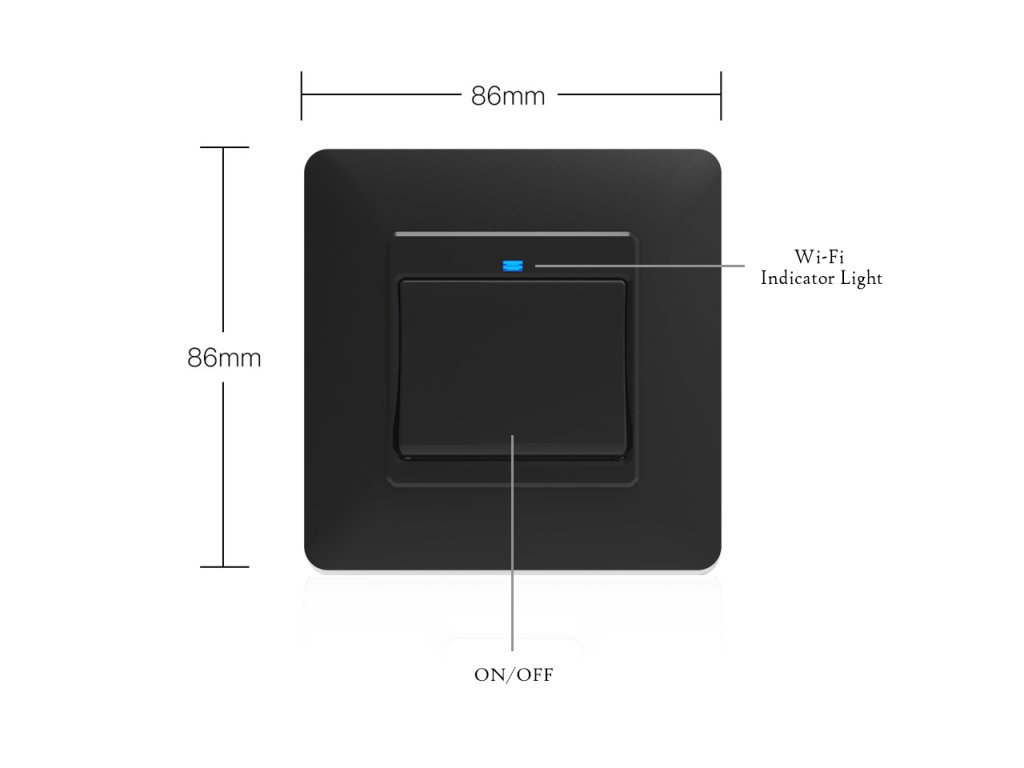 WIFI vypínač pro osvětlení a elektroinstalaci, jedno tlačítko, připojení přes WIFI, napájení ze sítě, kompatibilní s Google Assistant a Amazon Alexa, aplikace pro Android/iOS Tuya Smart Life, barva černá