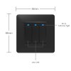 WIFI vypínač pro osvětlení a elektroinstalaci, tři tlačítka, připojení přes WIFI, napájení ze sítě, kompatibilní s Google Assistant a Amazon Alexa, aplikace pro Android/iOS Tuya Smart Life, barva černá