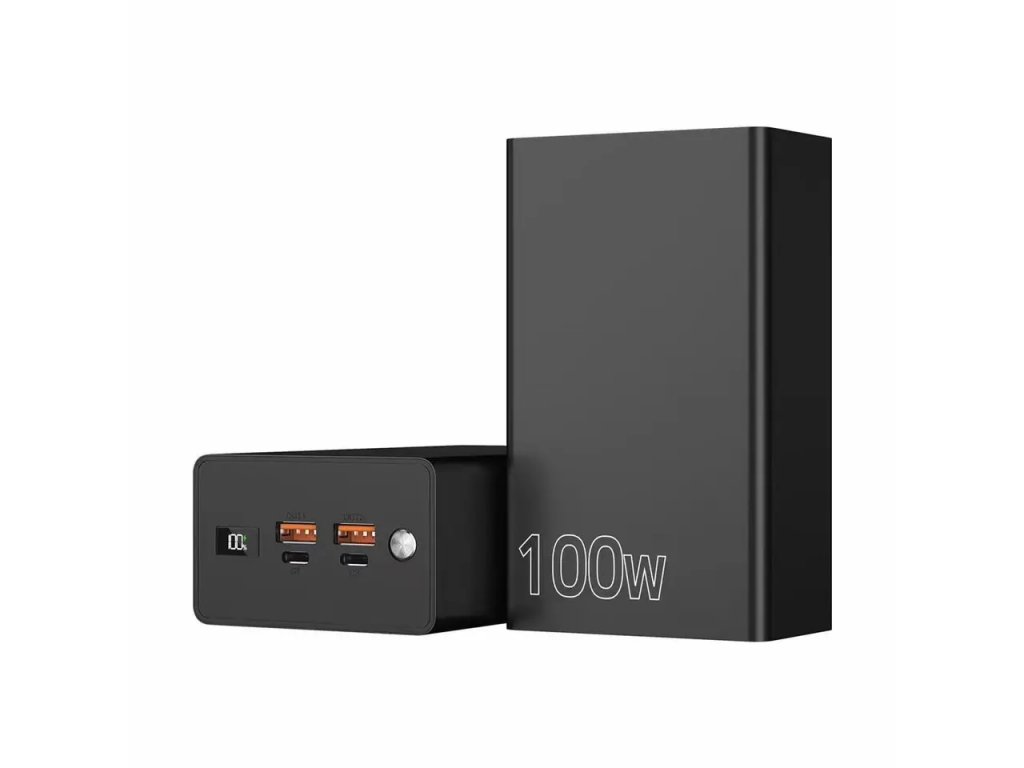Velkokapacitní powerbanka vhodná pro nabíjení mobilních telefonů, tabletů a notebooků, kapacita 50 000 mAh, rychlé nabíjení PD 100W, 2 x USB a 2x USB-C, kvalitní lithium-polymerové baterie, certifikace: FCC, CE, Rohs, LED displej, ochrana proti nadměrnému vybíjení, ochranu proti zkratu, přebíjení a kolísání nízkého napětí, barva: černá