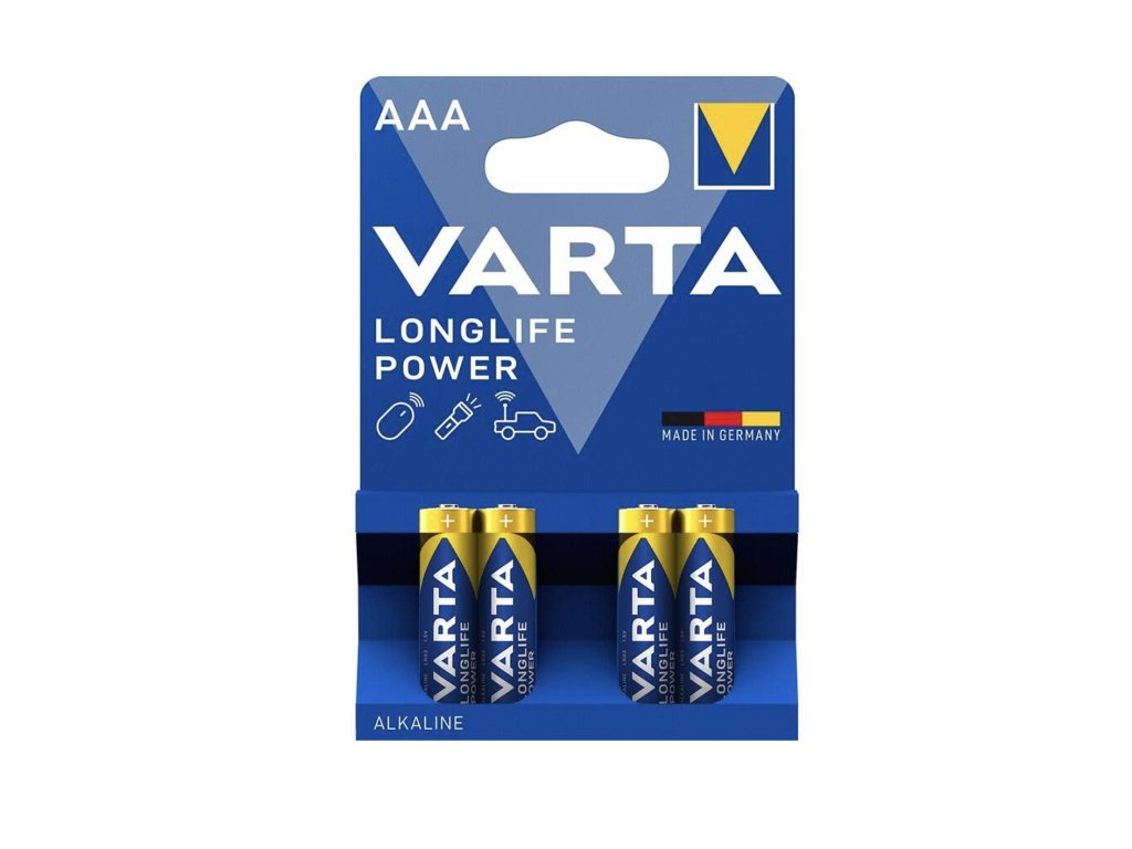 Alkalická baterie Varta AAA (LR03) Longlife Power, napětí 1,5 V, vhodné pro napájení chytrých klik, schránek na klíče a dalších přístrojů, balení obsahuje 4 kusy.